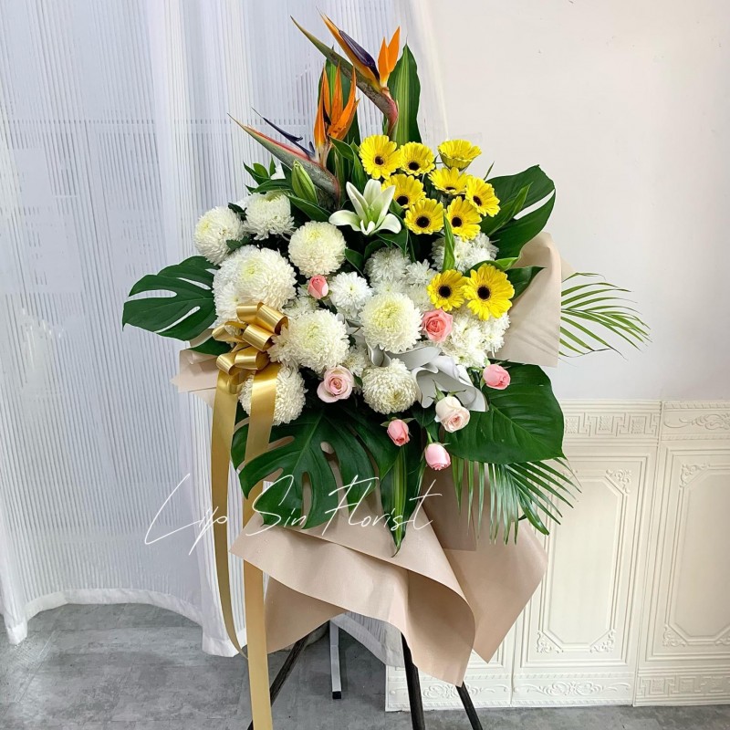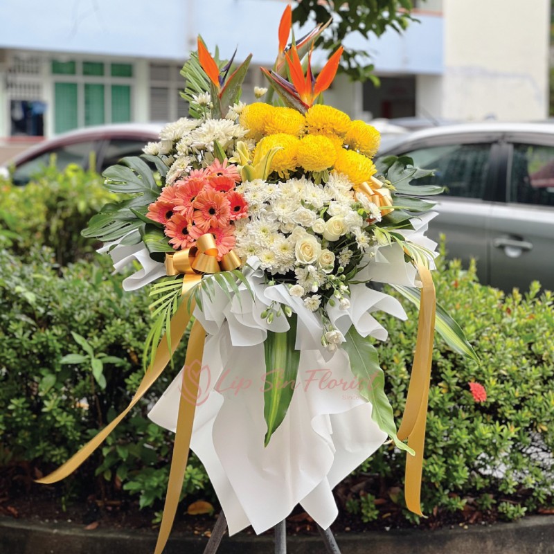 EXPRESS HEARTFELT THOUGHTS OF SYMPATHY IN A SPECIAL WAY WITH THIS FUNERAL FLOWER STAND